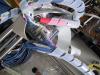 | Holder is a aluminium "tube" cutted to right lenght and drilled with proper holes to make axis go through and to fit motor. Holder also has 2 screws for attaching to machine itself, and these screwsholes are loose enough to allow proper adjustement to align axis to motor shaft. The motor shaft and screw axels are attached with rubber tube tightened with "water pipe tighteners". This allows small movements and eliminates vibrations translating to axel. | |